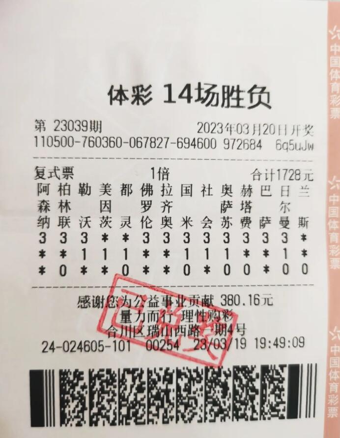 在代先生看来,体彩足彩相较于数字型游戏,需要更多的经验与智慧,“一定要做到懂球。比如3、4月份一般就进入了五大联赛的后半段,强队可能因密集赛程的影响产生球员受伤、体能受限等情况,而保级球队又会为了抢分战意十足,这时候就需要多多留意,防止冷门出现。”