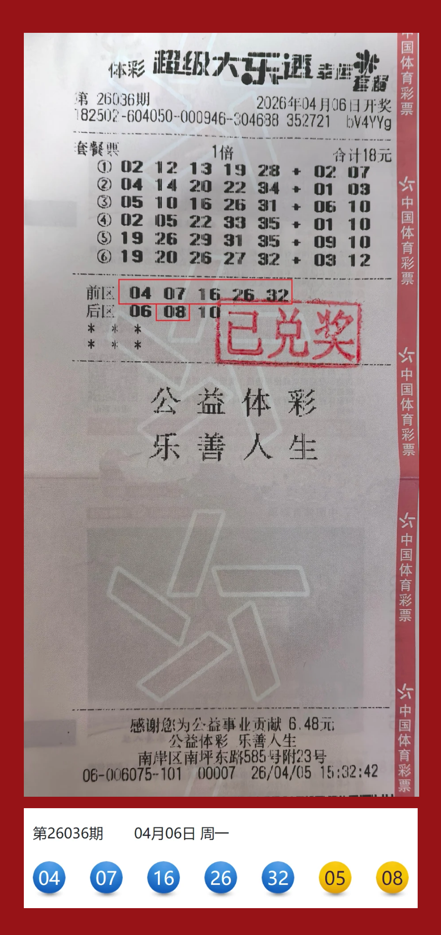 4月6日晚,体彩大乐透第26036期开奖,来自南岸区的肖先生(化姓)凭借一张18元套餐票,一举命中2注二等奖、1注三等奖,累计收获奖金21.7万元。