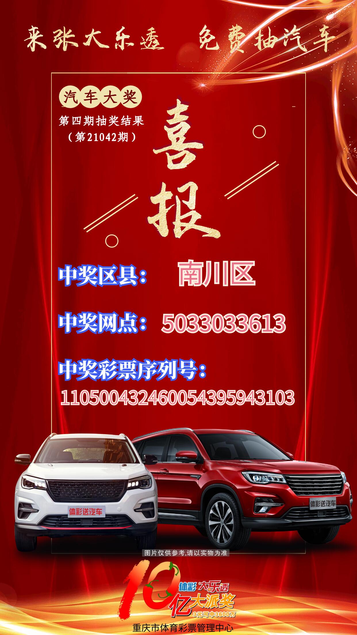 温馨提示:奖品兑换有效期为抽奖结果公布之日起20个自然日内,过期视为弃奖;中奖者凭中奖彩票到市体彩中心兑奖大厅现场兑奖,中奖汽车为裸车,相关税费等由中奖者承担。