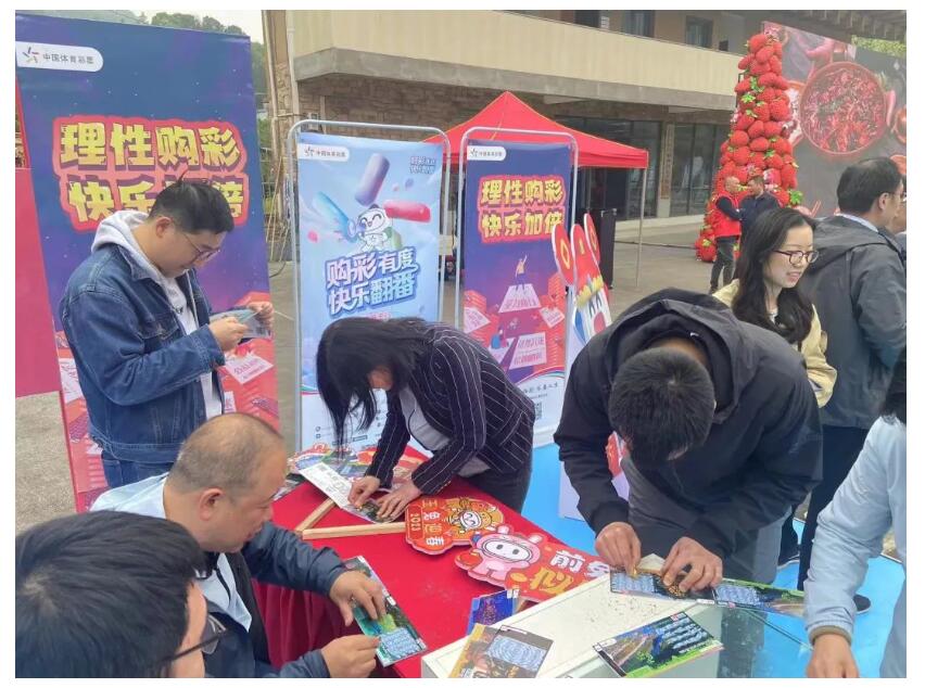 在现场设置的即开型体育彩票销售摊位前,丰富有趣的顶呱刮即开票吸引了众多市民了解规则、挑选票种,玩得不亦乐乎。现场的工作人员和销售员还在销售中向购彩市民介绍体育彩票是国家公益彩票,所购买的每张即开型体育彩票金额中的20%都将用于社会公益事业,让更多人知道买彩票不仅能中奖,还能为社会公益事业作贡献、献爱心。
