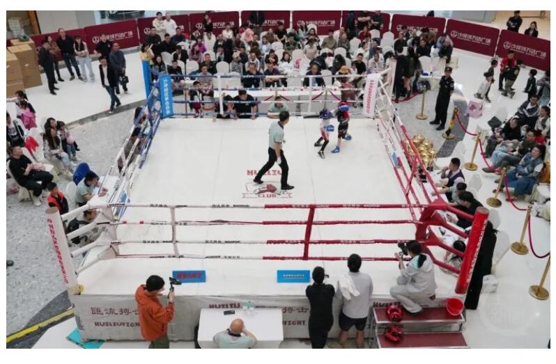 为助力全民健身推广,同时,积极推动川渝两地体育融合发展工作走深走实,带动两地体育产业高质量发展,5月1日,2024年“中国体育彩票”第二届川渝城际格斗联赛在沙坪坝万达广场开打,300多名拳手尽情享受和展示拳击的魅力。
