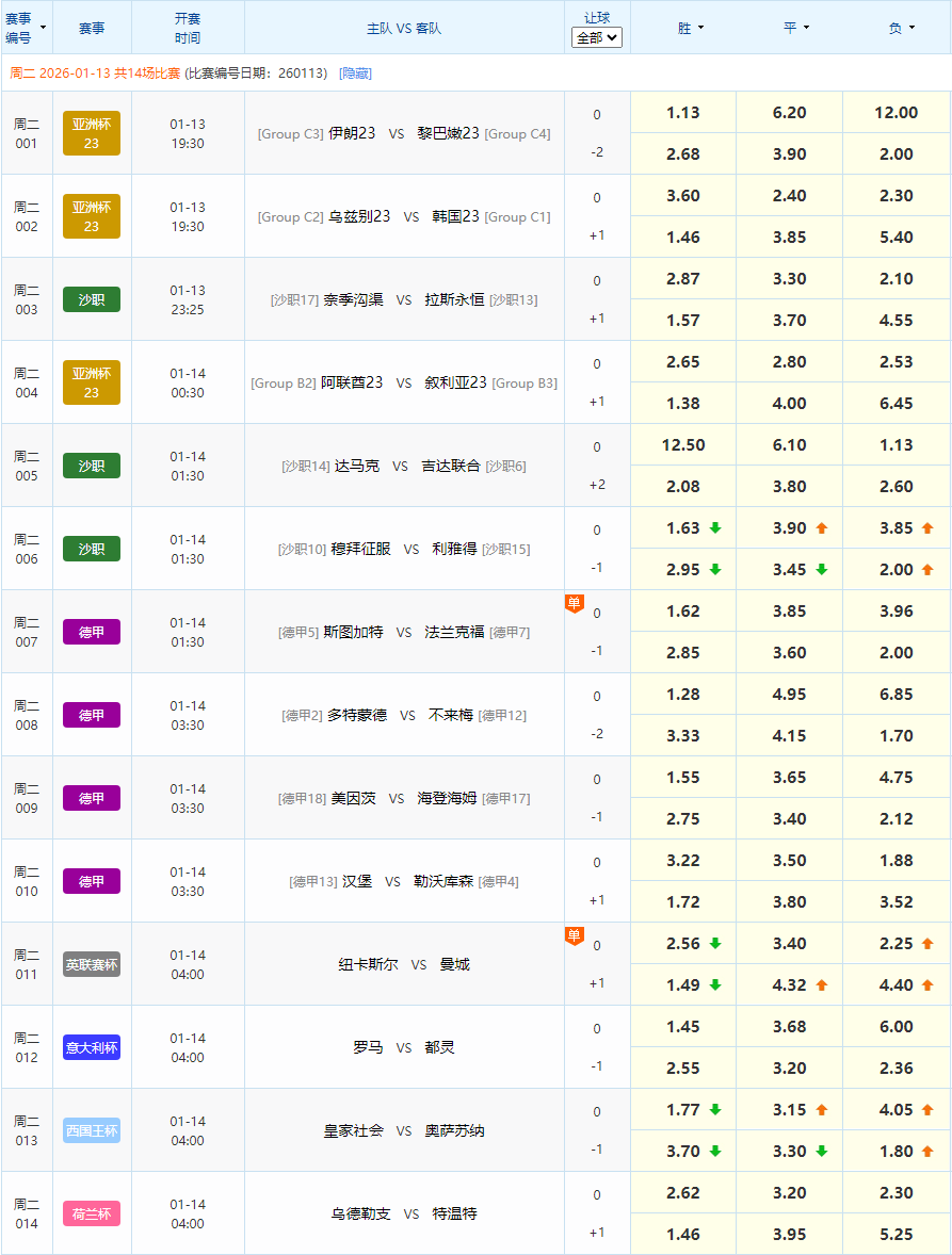 (最新赛事请以“中国竞彩网”为准)